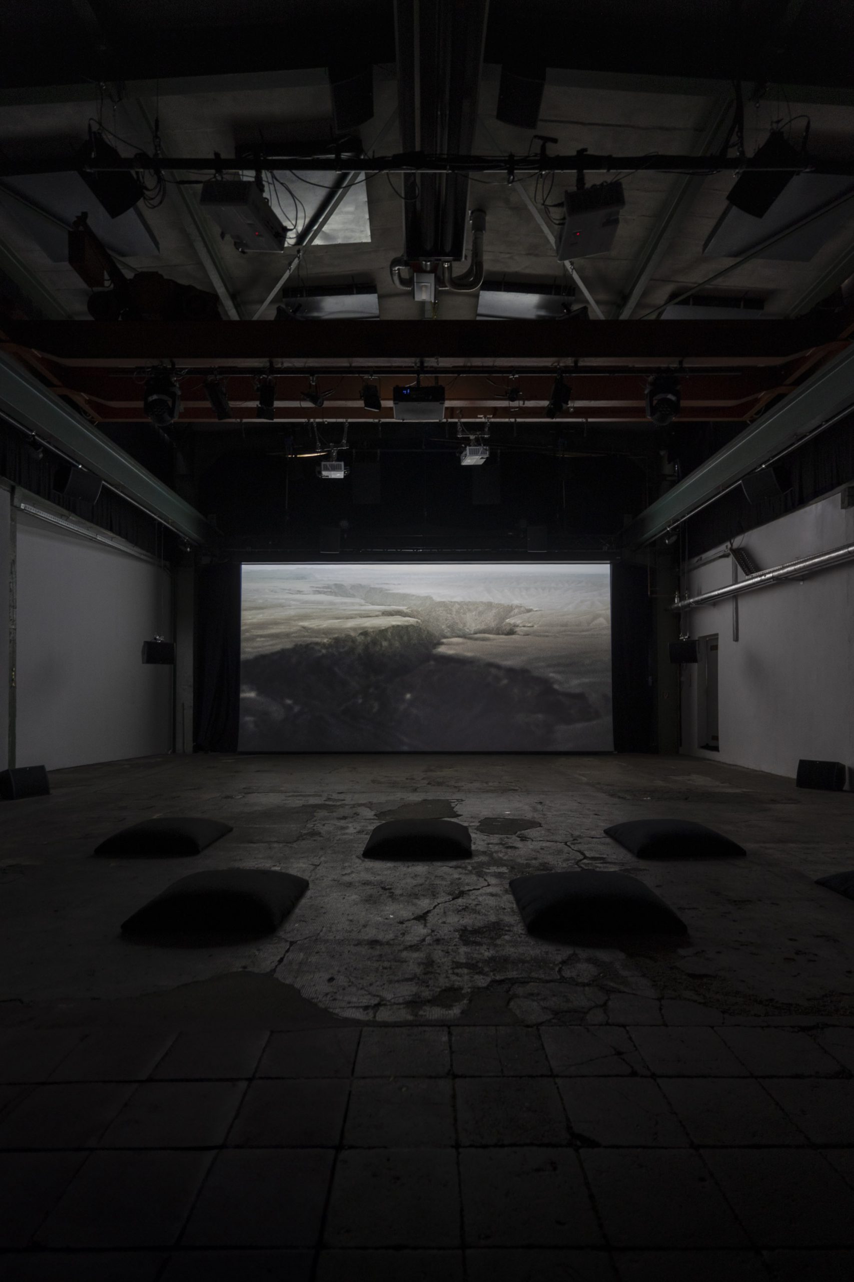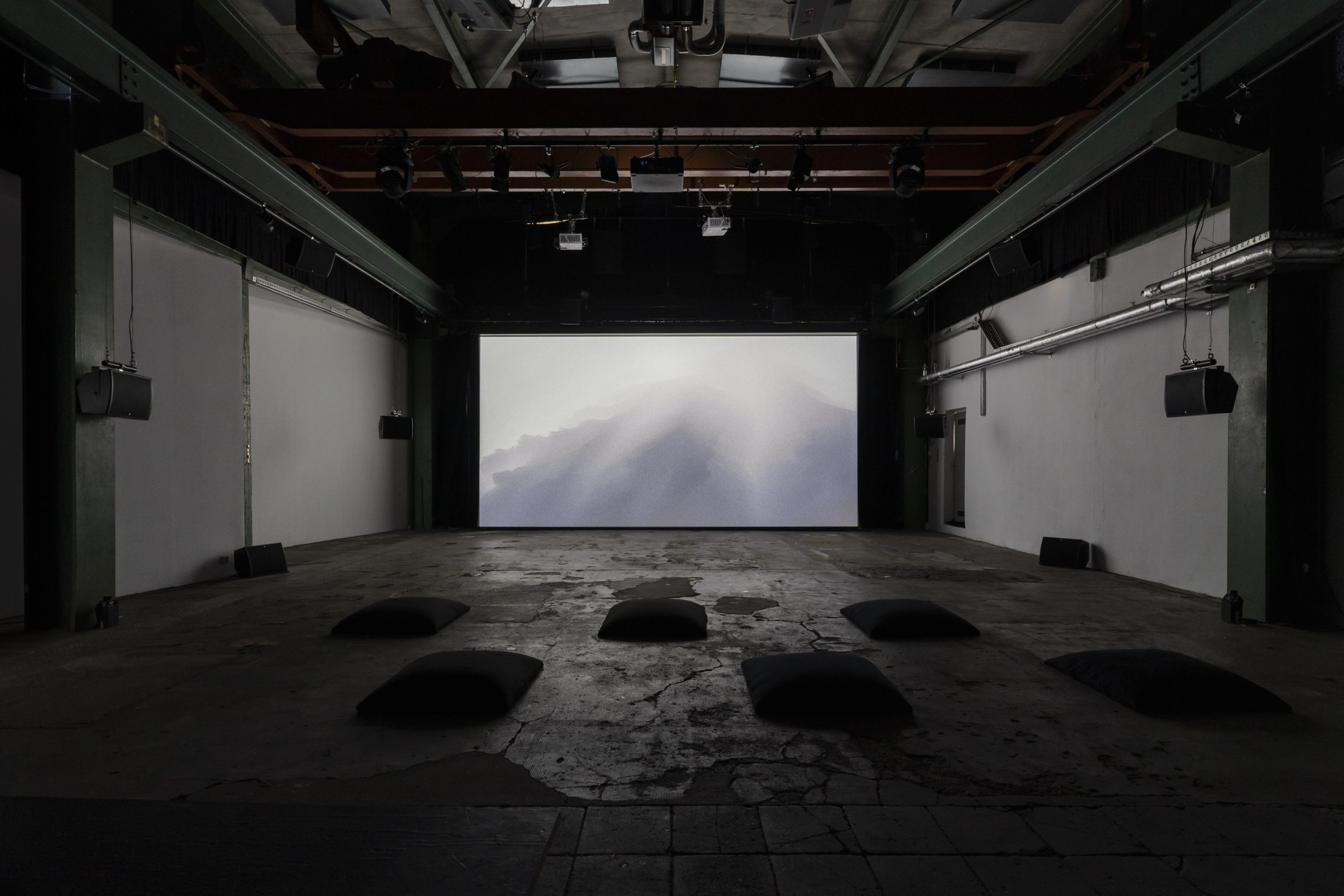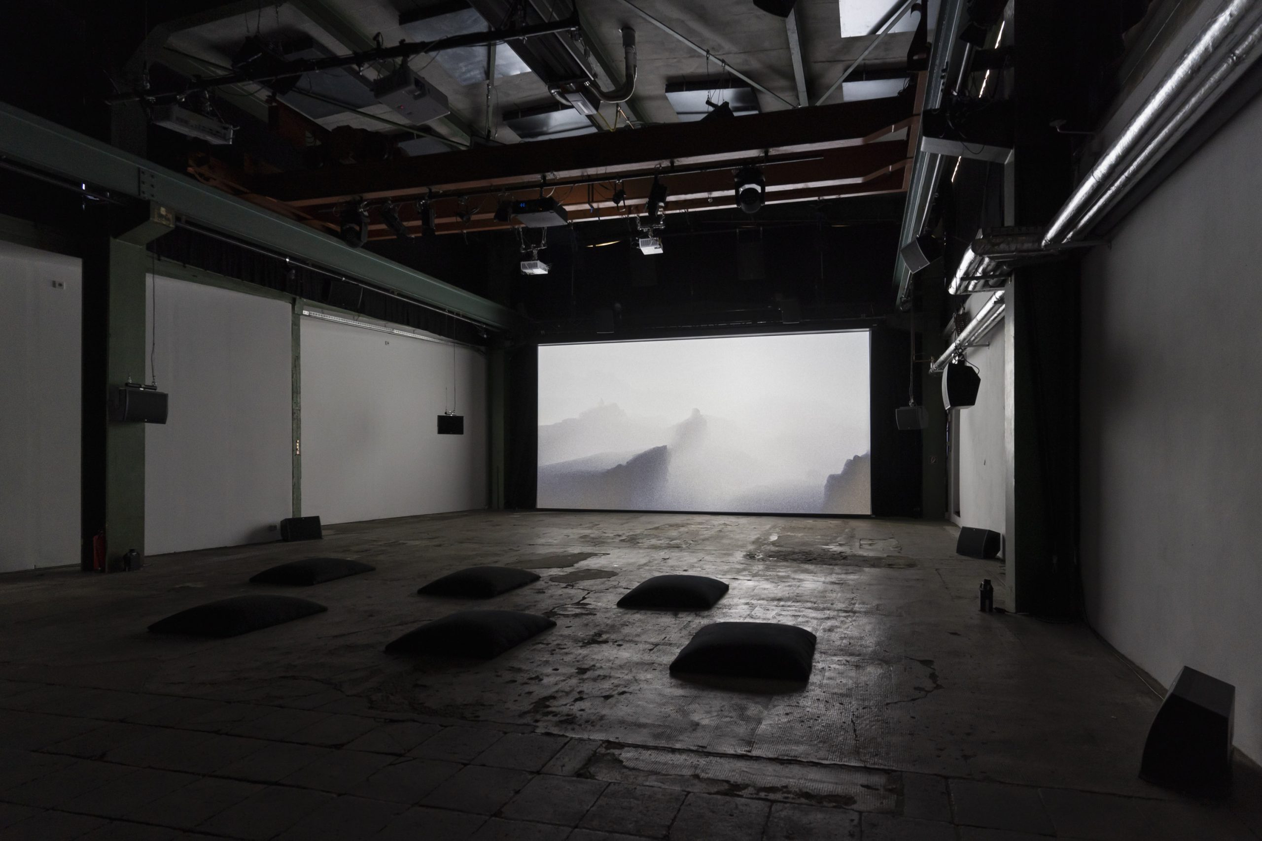 Black Canyon was produced as a site-specific piece for ZiMMT Halle, it was composed using footage recorded in the Almaty region of Kazakhstan, but the process started by creating the sound design before working with the images. This approach was conceived to explore the potential of ZiMMT’s 3D audio setup. The result is a blend of noise, drones, and diffuse imagery, with visual references that at times recall classical oriental painting and, simultaneously, digital territorial maps. The work offers a sonic and visual experience in which the canyon — these monumental fractures in the landscape — takes center stage